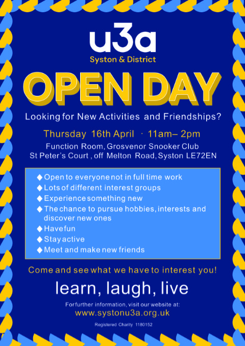 Welcome to Syston and District U3A, we’re a friendly organisation offering a wide range of activities and interest groups for people who no longer work full time.
